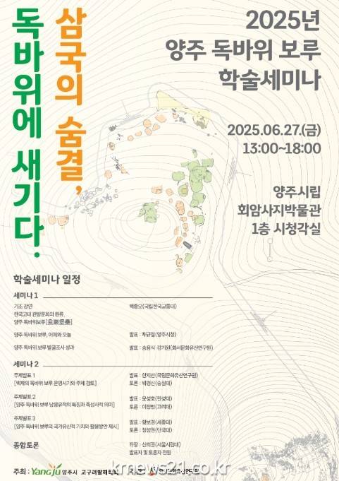 ‘삼국의 숨결, 독바위에 새기다’라는 주제로 열리는 이번 세미나는 시와 고구려발해학회(회장 백종오)가 공동주최하며 8차에 걸쳐 진행된 ‘양주 독바위 보루 발굴 조사’의 성과를 공유하고 그 학술적·역사적 가치를 시민들과 함께 재조명하기 위해 마련됐다.