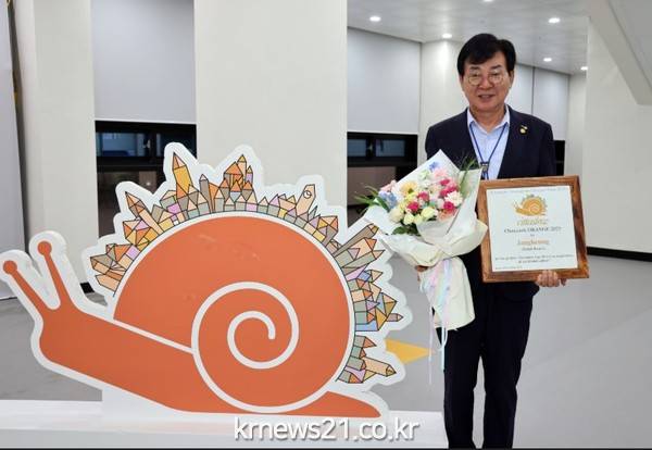 ▲ 사진=장흥군청장흥군은 21일 국제슬로시티 시장총회에서 슬로시티 대상인 ‘2025 오렌지달팽이상(CHIOCCIOLA ORANGE 2025)’을 수상했다고 전했다.