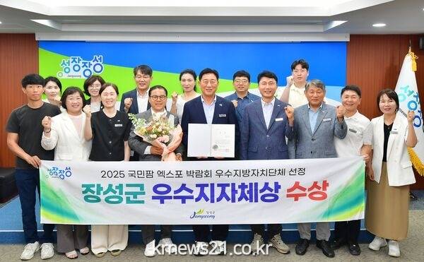 ▲ 사진=장성군장성군이 지난 20일 서울 에이티(aT)센터에서 열린 ‘2025년 귀농귀촌박람회 국민팜 엑스포’에서 우수지자체상을 수상했다.