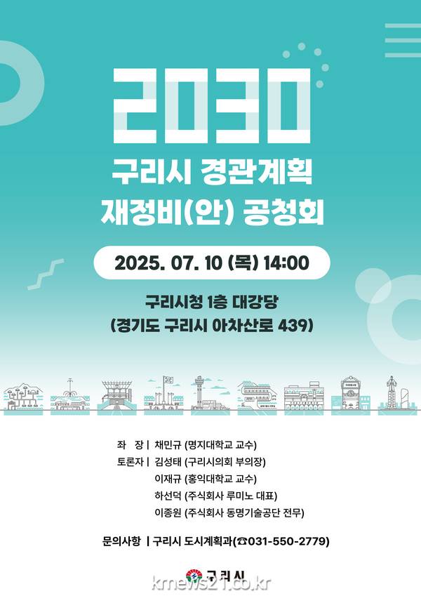 ▲ 사진=구리시청백경현 구리시장은 “이번 공청회를 통해 각종 개발사업 등으로 급변하는 도시 환경 변화에 능동적으로 대응하고, 지속 가능한 경관 추진 전략과 관리 방안 등을 포함하는 실효성 있는 경관 가이드라인과 실행계획을 수립하겠다.”라고 말했다.