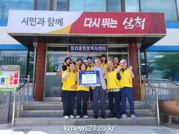 ▲ 사진=삼척시□ 늘푸른새마을금고(이사장 우기식)는 7월 3일 정라동지역사회보장협의체(공동위원장 박순녀, 안미숙)에 정라동 지역특화사업 활성화를 위한 성금 100만 원을 기탁하였다.