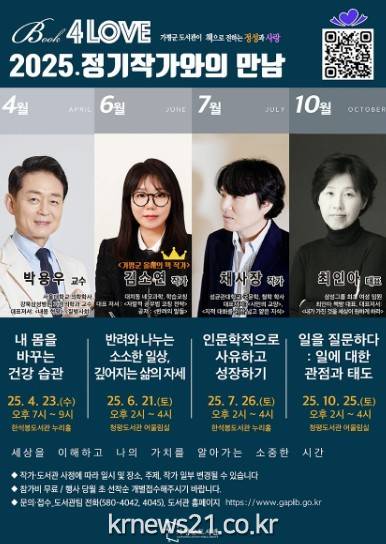 참여 신청은 가평군도서관 홈페이지(www.gaplib.go.kr) 또는 한석봉도서관 전화(☎031-580-4042)를 통해 가능하다.