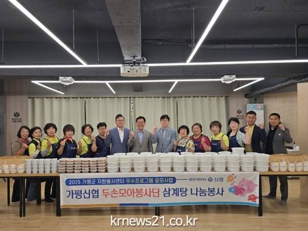 박성재 가평신협 이사장은 “영양과 정성을 담은 삼계탕이 어르신들의 기력 회복과 건강 증진에 보탬이 되길 바란다”며 “앞으로도 이웃과 함께하는 신협의 역할에 최선을 다하겠다”고 밝혔다.