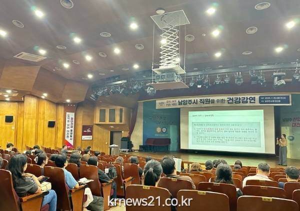 ▲ 사진=남양주시남양주시(시장 주광덕)는 남양주보건소가 25일 시청 다산홀에서 직원들을 대상으로 ‘흡연은 NO! 건강은 YES! 함께 만드는 건강한 직장’을 주제로 건강강연과 건강캠페인(금연·절주)을 실시했다고 밝혔다.