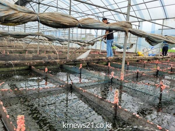 이어 7월 30일부터 8월 4일까지는 상면 항사리 대보교 인근 침수 피해 벼 재배 농가와 우렁이 농장 주변을 대상으로 친환경 미생물 살포를 지원하고 있다. 군 농업기술센터는 자가배양한 복합미생물과 BT균, 질화균 등 160L를 공급해 생육 회복과 악취 저감, 병해충 예방 효과를 기대하고 있다. 현장에는 병해충방제지원단 2명과 광역방제기 1대가 지원된다.