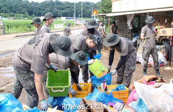 수기사 장병들은 민가와 유원지 상가에 쌓인 토사 제거는 물론, 도로 복구와 배수로 정비, 실종자 수색, 의료 및 방역 지원, 세탁 봉사 등 다양한 분야에서 군민과 함께 땀 흘려 왔다.