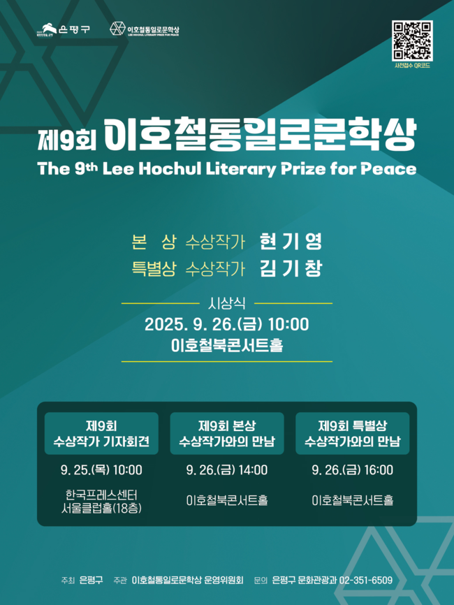 은평구는 ‘제9회 이호철 통일로 문학상’ 본상에 현기영, 특별상에 김기창 작가를 각각 선정했다. 기자회견은 오는 9월 25일, 시상식과 부대행사는 9월 26일에 개최된다.
