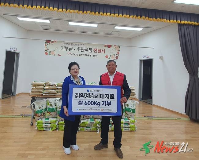 울산동구어이봉사단(회장 이병태)은 10월 1일 울산동구푸드뱅크에 백미 10kg 60포대(총 600kg)를 기부했다.