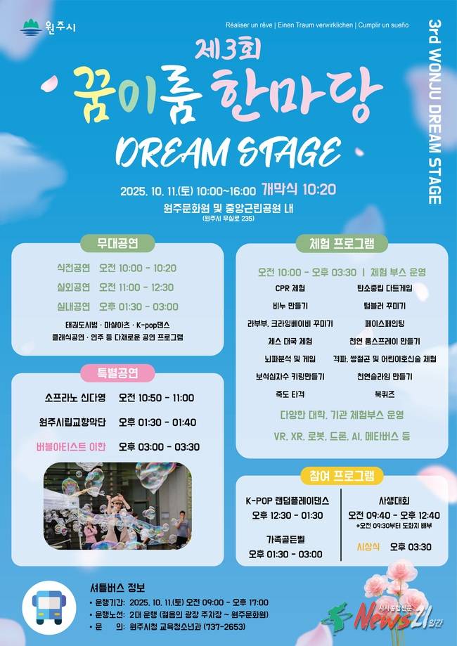 ▲ 사진=원주시원주시는 오는 11일 원주문화원 및 중앙근린공원 일원에서 ‘제3회 원주시 꿈이룸 한마당’을 개최한다.