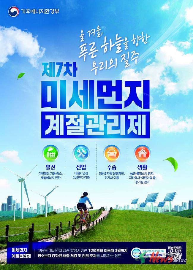시는 계절적 요인으로 미세먼지 농도가 높은 매년 12월부터 이듬해 3월까지 평상시보다 강화된 미세먼지 배출 저감 대책을 추진하고 있다. 이번 계절관리제는 수송, 산업·발전, 생활공간 관리 등 3개 분야에서 총 8개 중점 대책을 추진한다.