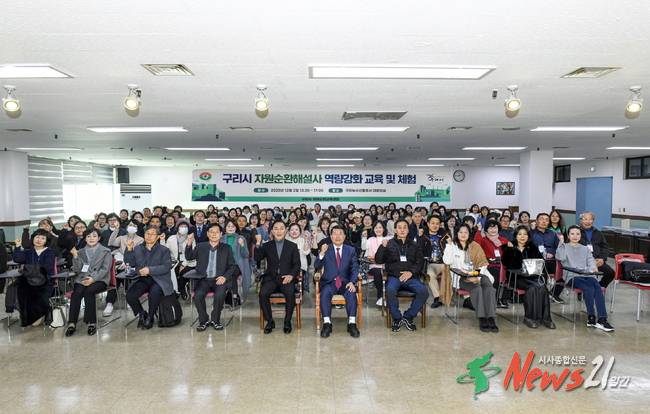 ▲ 사진=구리시청구리시(시장 백경현)는 지난 12월 2일(화)에 구리농수산물공사 대회실에서 자원순환 해설사와 해설사 양성과정 수료생 150여 명을 대상으로 역량 강화 및 체험교육을 실시했다고 밝혔다.