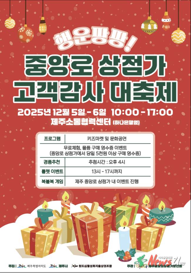 ▲ 사진=제주시오는 12월 5일(금)과 6일(토) 오전 10시부터 오후 5시까지 중앙로 상점가 일대에서 ‘행운팡팡! 고객감사 대축제’가 개최된다.