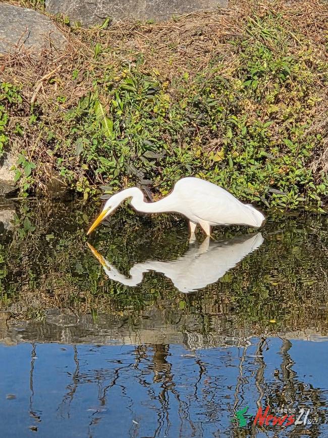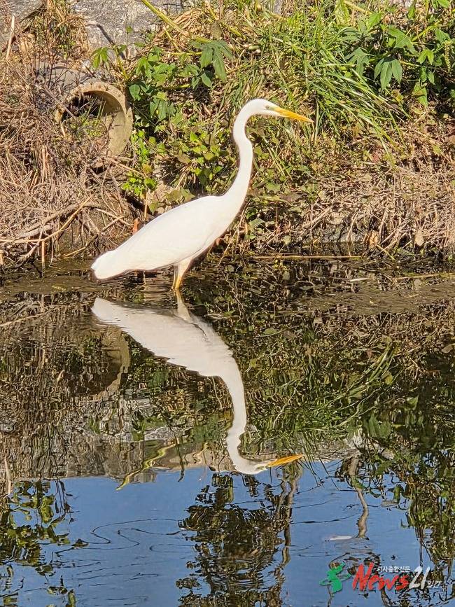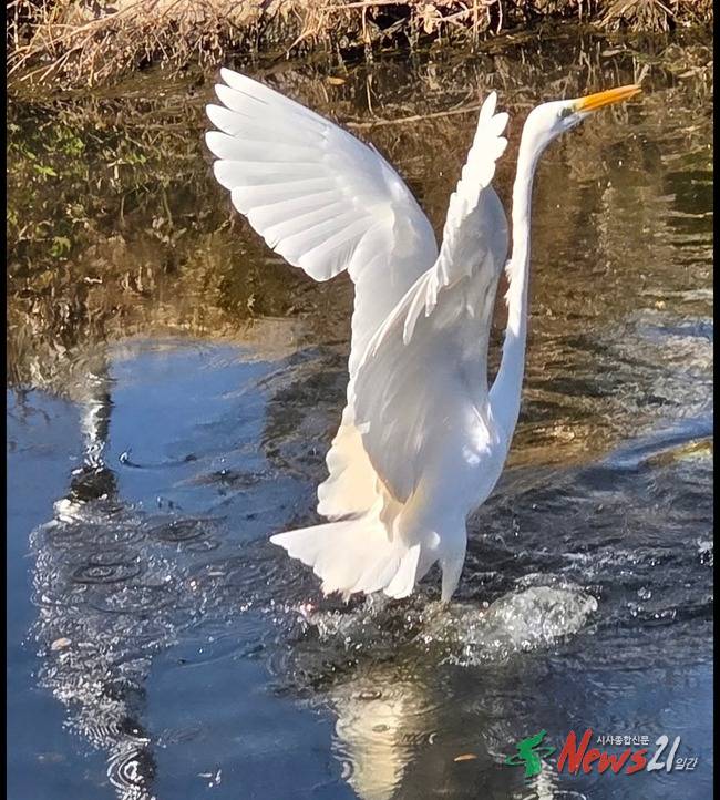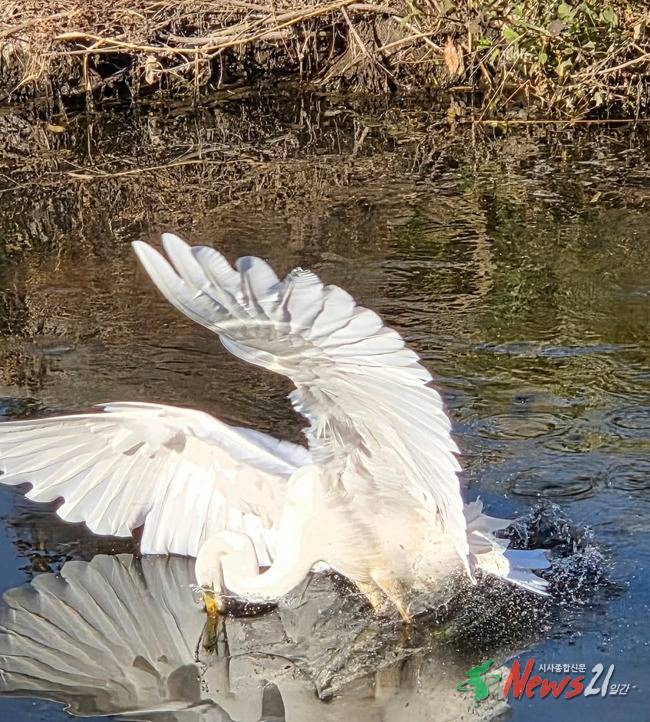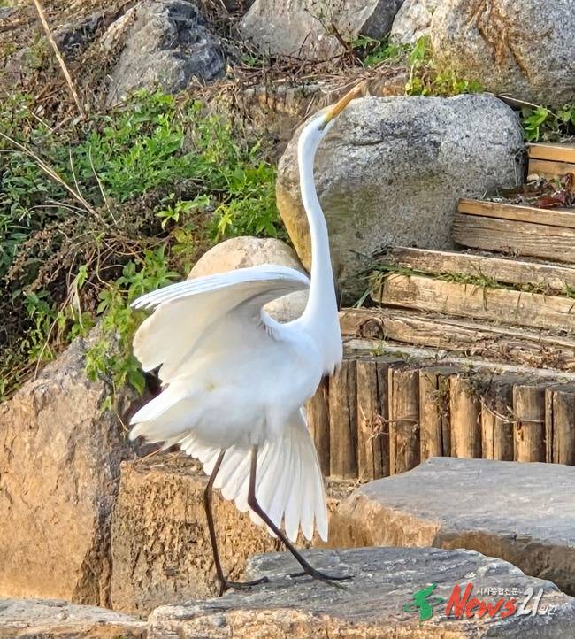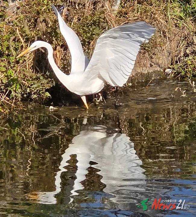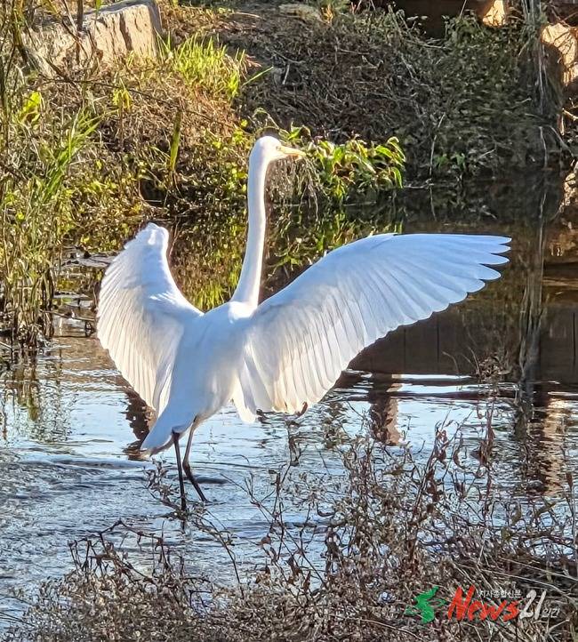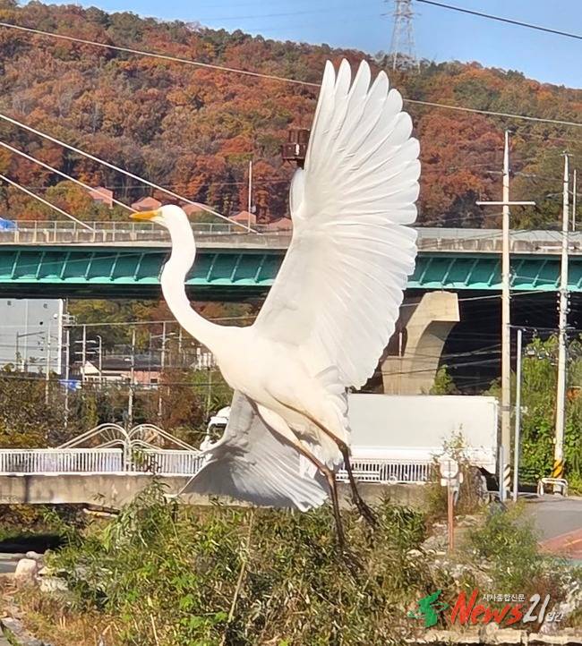 날개를 펼치면 1.5~1.8m에 달하며, 우아한 비행과 기다란 목을 구부려 먹이를 잡는 모습이 특징이다.