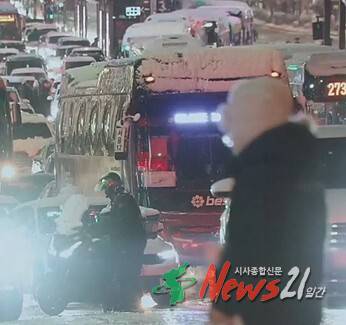 눈은 밤사이 대부분 그쳤지만, 쌓인 눈이 오늘 아침 영하권 추위 속에서 도로에 얼어붙을 수 있어 교통안전에 각별한 주의가 필요하다.