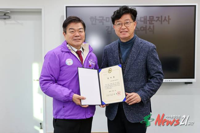 ▲ 사진=동대문구서울 동대문구(구청장 이필형)는 5일 한국마사회 동대문지사(지사장 김영립)에 감사장을 전달하며 올 한 해 지역 복지 증진에 기여한 공로를 인정했다. 수여식은 이날 오전 9시 구청장 접견실에서 열렸으며, 이 구청장은 “지속적인 나눔이 한 해의 복지를 만든다”고 감사를 전했다.