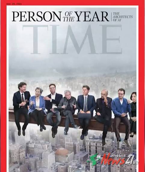 미국 시사주간지 타임은 올해의 인물로 ‘AI 설계자들’을 선정했다고 발표하며, 1930년대 뉴욕 건설 노동자를 담은 유명 사진 ‘마천루 위의 점심’을 패러디한 이미지를 함께 공개했다. 이는 AI 발전이 현재 진행형이며, 인류가 새로운 전환점 위에 서 있음을 시각적으로 표현한 것으로 풀이된다.