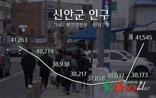 신안군 인구는 2022년 한때 3만7천 명대까지 감소했다. 그러나 최근 3년간 전입자가 전출자보다 꾸준히 많아지면서 지난해 다시 4만 명대로 올라섰다.