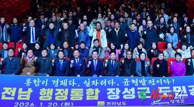 20일 장성문화예술회관 대공연장에서 ‘광주·전남 행정통합 장성군 도민공청회’가 열렸다. 군민과 언론인, 공직자 등 700여 명이 참석해 지역민의 뜨거운 관심을 대변했다. 김한종 장성군수는 “전남도와 함께 행정통합시대에 걸맞은 정책과 기반을 잘 준비하겠다”면서 “원활하게 추진될 수 있도록 힘을 모아 주시기 바란다”고 당부했다.