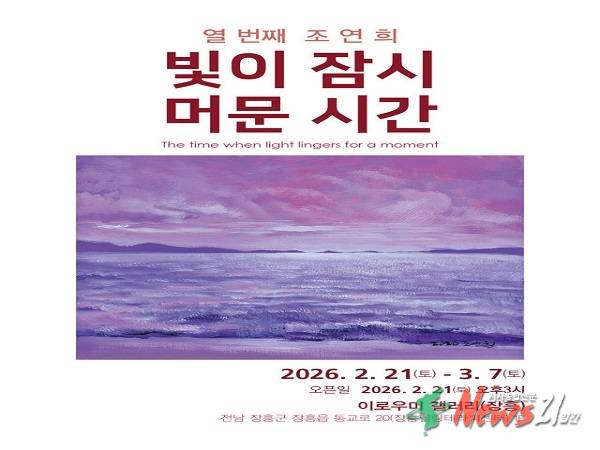 ▲ 사진=장흥군 찰나의 빛이 머무는 바다의 풍경을 통해 내면의 그리움과 치유를 노래하는 조연희 작가의 개인전 <빛이 잠시 머무는 시간>이 오는 2월 21일부터 3월 7일까지 장흥읍 소재 ‘이로우미 갤러리’에서 열린다.