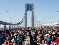 4일(현지시간) '2018 뉴욕 마라톤 대회'에 참가한 선수들이 출발점인 베라자노 내로우스 브릿지를 건너고 있다.