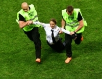 15일 모스크바에서 열린 프랑스와 크로아티아 간 2018 러시아 월드컵 결승 후반전 경기중 경찰 제복을 입은 여성 3명과 남성 1명이 경기장에 난입했다. 이들은 러시아 록밴드 '푸시 라이엇' 멤버로 반(反)푸틴 운동으로 유명하다. 이들은 러시아 시인 드미트리 프리고프의 사망 11주기를 맞아 이같은 이벤트를 벌였다고 설명했다.