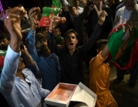 파키스탄 법원이 6일 나와즈 샤리프 전 총리에게 부패 혐의로 징역 10년형을 선고했다. 샤리프의 딸 마리암은 징역 7년, 사위는 징역 1년반을 선고 받았다. 2015년 '파나마 페이퍼스'가 폭로 되면서 샤리프 당시 총리의 해외 자산인 런던 아파트 4채가 드러났다. 사진은 법원의 판결에 기뻐하는 시민들.