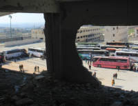 내전이 계속 되고 있는 시리아의 한 도시에서 버스로 민간인을 대피 시키는 모습이다