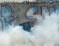 베네수엘라 카라카스에서 니콜라스 마두로 대통령에 반대하는 대규모 반정부 시위중 최루탄을 쏘아 항의 하고 있다