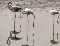 라스 알 코르 야생동물 보호구역에서 핑크 플라망고