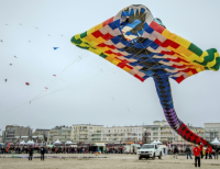 북부 프랑스의 제31회 국제 연 축제에서 대형 연을 날리고 있는 모습이다