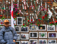 서울의 삼성동 박근혜 전 대통령의 자택에 사진과 꽃을 걸어 둔 모습이다