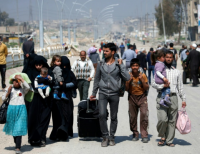 이라크 인들은 정부군과 이슬람 국가(IS)집단들 간의 계속 되는 전투로 인해 짐을 챙기고 모술을 떠나고 있다