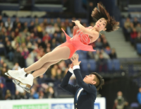 중국의 금메달 리스트인 수 웬징 선수와 한콩은 헬싱키의 ISU세계 피겨 스케이팅 대회에 참가하여경기를 펼치고 있다