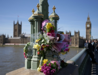 런던의 웨스트 민스터 다리, 3월 22일의 공격의 희생자에 대한 추모의 꽃