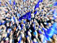 베를린에서 친 유럽 시위에 참석한 사람들의 모습