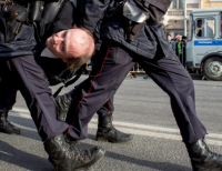모스크바의 부패반대 시위 중 경찰에 의해 체포된 남성