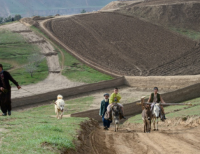 당나귀를 타고 있는 아프가니스탄의 소년