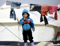 난민 캠프에서 모술을 탈출한 이라크 어린이다