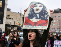 세계 여성의날 여성 권리에 대한 평등 시위를 하고 있다