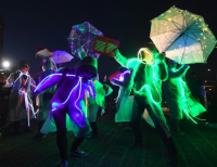 박근혜 대통령의 탄핵 후 서울에서 의상에 조명을 달고 춤추고 있다