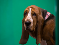 영국 버밍엄에서 개 쇼에 참여한 바셋하운드의 축 늘어진 모습