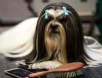 버밍엄의 국립 개 미인대회에 참여하기 위해 단장한 모습이다
