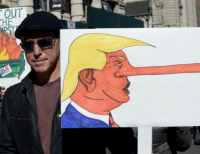 대통령의 날 뉴욕에서 트럼프에 반대하는 시민 모습이다