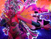 니스 카니발 에서 화려한 복장과 분장을 하고 있는 모습이다.