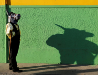 니카라과시의 그라나다 국제 축제 현장에 당나귀로 위장한 댄서 모습이다