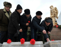 1980 년대 아프가니스탄 반군과 싸우면서 아프가니스탄에서 살해당한 소비에트 병사들의 추모 기념물에 꽃을 뿌리고 키르기즈스탄의 수도 인 비슈 케크에서 기념식을 가졌다.