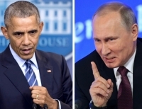 버락 오바마 대통령이 29일(현지시간) 러시아의 미국 대선 개입과 관련 미국내 러시아 외교관 35명 추방과 러시아 정보기관 2곳에 대해 제재 조치를 발표했다. 이에 러시아는 '상응한 제재'를 선언하며 맞대응에 나섰다. 사진은 버락 오바마 대통령(왼쪽)과 블라디미르 푸틴 러시아 대통령