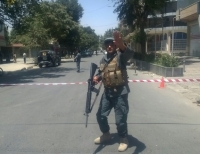 아프가니스탄 수도 카불에 위치한 이라크 대사관 근처에서 경계서는 경찰. 31일(현지시간) 오전 11시께 이라크 대사관에서 부근에서 폭발물을 실은 차량이 폭발했으며 이어 3명으로 추정되는 괴한들이 총을 쏘며 대사관 건물 진입을 시도했다. IS는 이번 테러가 자신들의 소행임을 주장했다.