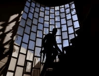이라크 군이 모술 재탈환을 위해 IS와 싸우는 동안 이라크 연방 경찰이 모술 지역의 한 건물 계단을 오르고 있는 모습.