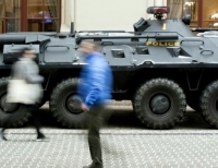 독일 크리스마스 시장에서 발생한 트럭 테러 이후 헝가리 수도 부다페스트의 크리스마스 시장 근처에 있는 장갑차